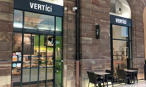 Hier die Salat- und Smoothie-Bar Vert Ici ansehen, im Herzen der Boutiquen der Aubette in Straßburg, von Montag bis Samstag, von 10 bis 20 Uhr.